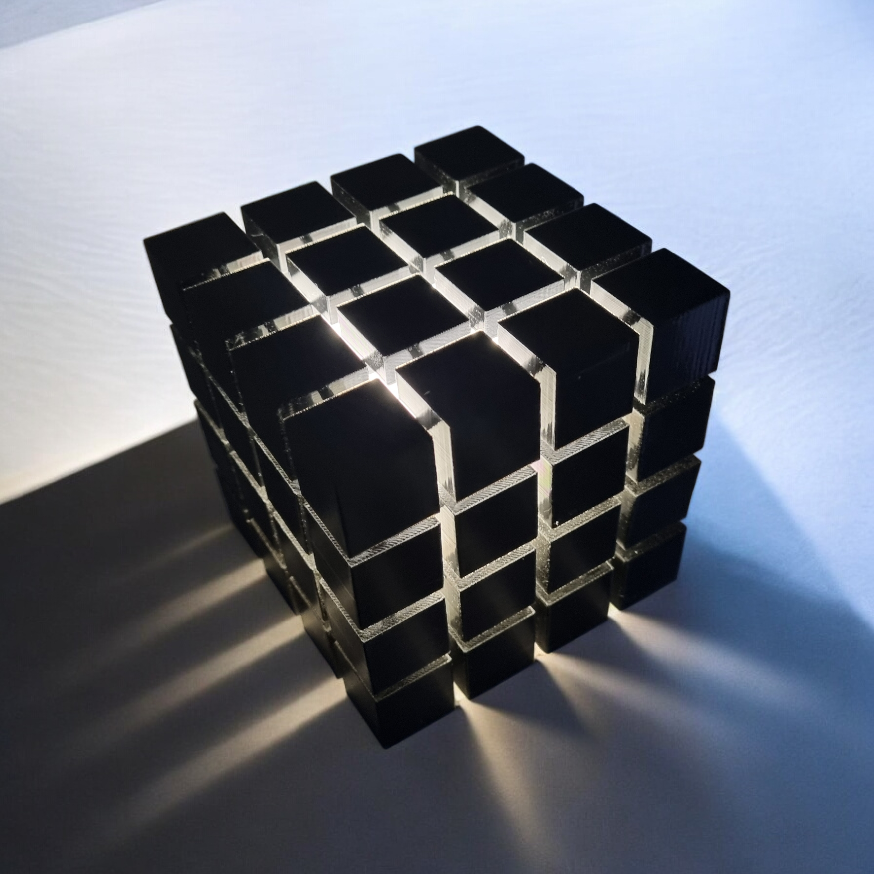 Beleuchteter Würfel mit 3D Drucker produziert und mit LED beleuchtet